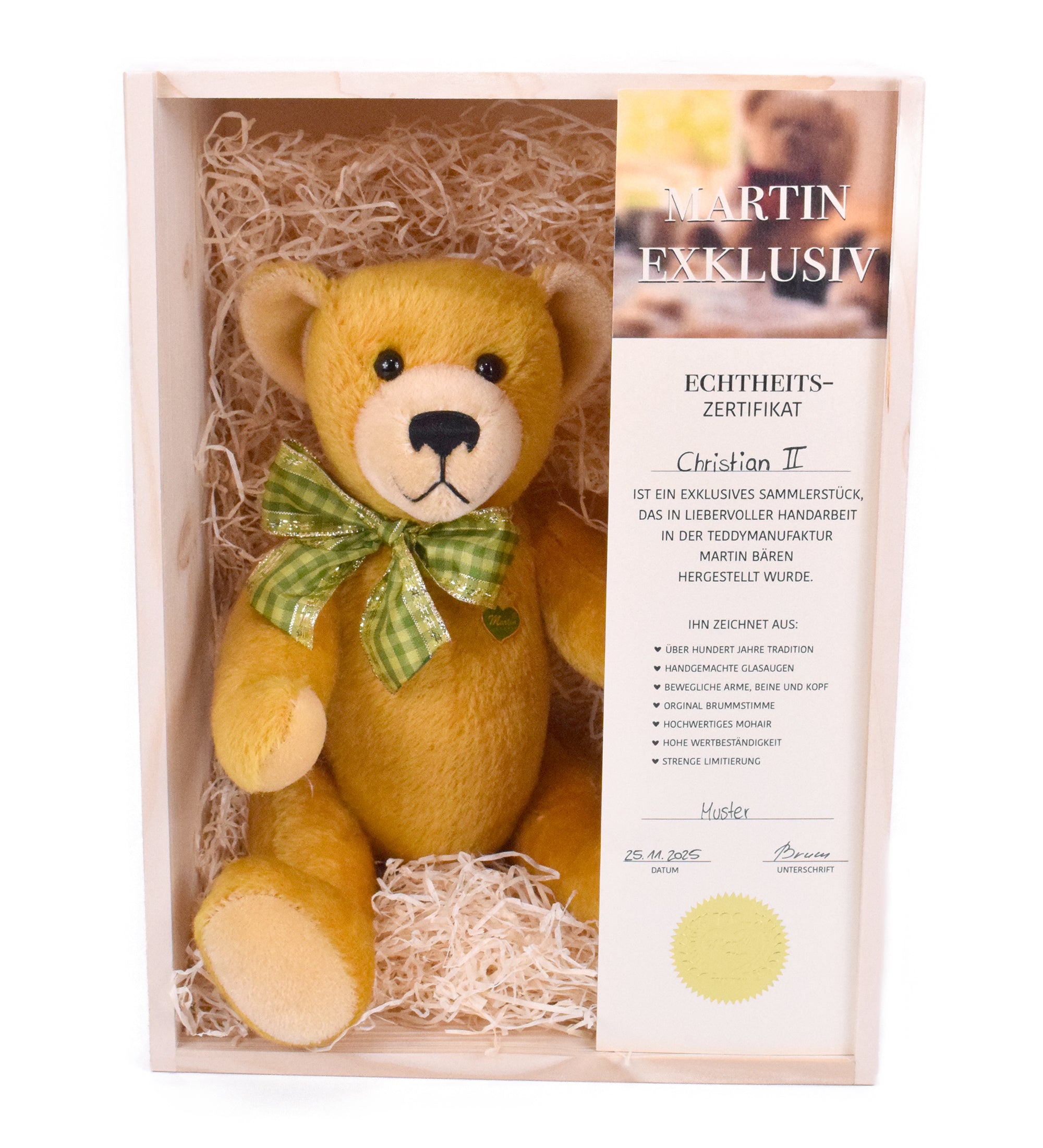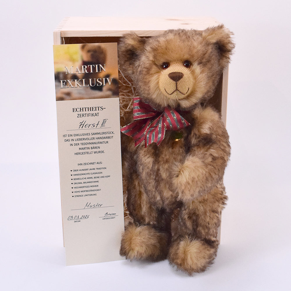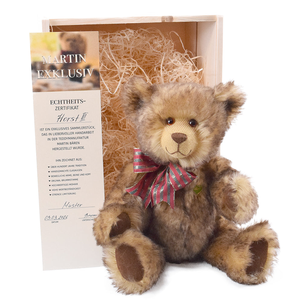 Sie sind auf der Suche nach einem ganz besonderen Teddy? Dann werden Sie bestimmt bei der Martin Bären GmbH fündig. Wir sind ein Traditionsunternehmen, das hochwertige Teddys in liebevoller Handarbeit herstellt. Dabei verwenden wir natürlich nur die besten Materialien. Das Ergebnis sind herrlich individuelle und kreative Kuscheltiere, die Ihrem Nachwuchs gute Dienste leisten werden. Auch Sammler können bei uns einen tollen Teddy kaufen. Schauen Sie sich einfach in Ruhe um, entdecken Sie das umfangreiche Sortiment und suchen Sie sich Ihren Lieblingsteddy aus. Jeder Bär hat seinen ganz eigenen Charakter und überzeugt mit individuellem Charme. Wenn Sie möchten, wird der Teddy mit Namen bestickt, sodass er besonders persönlich ist.