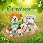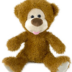 Oskar ist ein 25 cm großer Teddybär aus orange-braunem Plüsch mit beige eingesetzem Gesicht der frech seine Zunge rausstreckt. Der Pullover ist separat in unserem Shop zu finden und nicht im Bastelset enthalten.