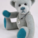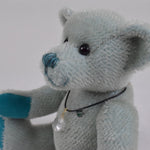 Ein 28cm vliesgefüllter Mohairteddy mit echtem Bergkristall als Glücksstein. Der Stein ist abnehmbar, so dass auch sie den tragen können und den nicht unbedingt an dem Teddy lassen müssen.