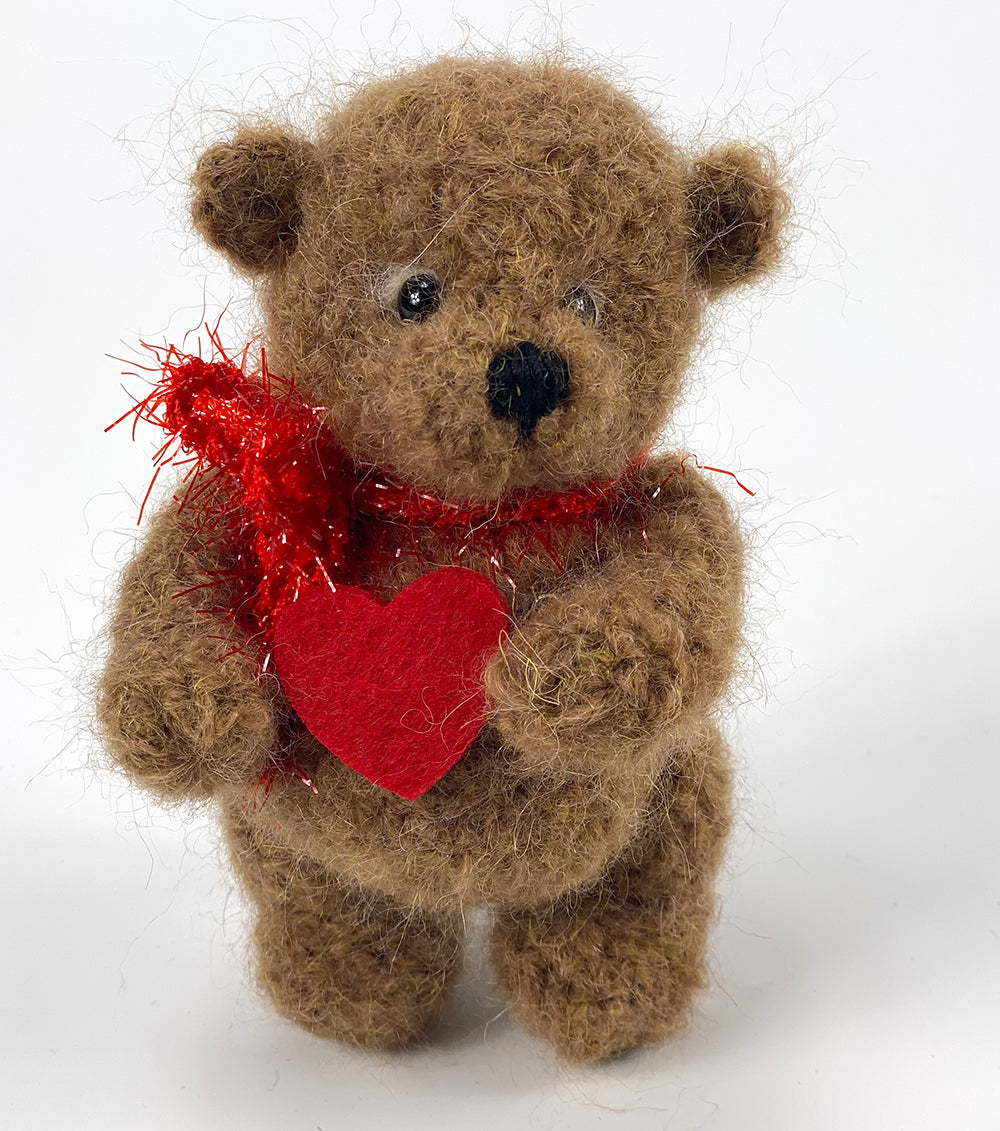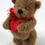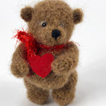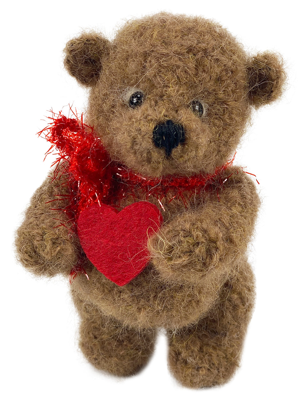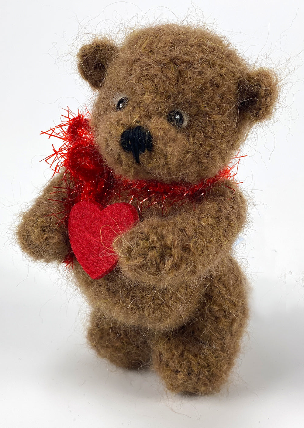 Lovely ist ein zauberhafter, handgehäkelter Teddy aus schokobrauner Baby-Alpakawolle, der mit seinem süßen Blick und seinem leicht geneigten Köpfchen sofort die Herzen erobert. Zwischen den Pfoten trägt er ein großes Filzherz – ein Zeichen seiner Liebe und Geborgenheit. Um den Hals schmückt ihn eine elegante rote Schleife, die seinen Charme perfekt abrundet. Mit einer Größe von 14 cm ist er der ideale Begleiter zum Liebhaben und Verschenken!