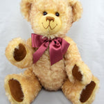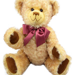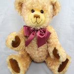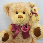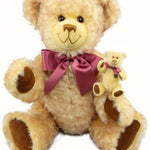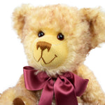 Er ist 43 cm groß, hat braune Augen und ein freundliches und liebenswertes Gesicht. Die haselnussbraune Nase ist in der typischen Teddy-T-Form bestickt. Das cremegelbe, leicht gelockte Mohair mit den goldbraunen Schimmer ist einmalig. Diese Farbzusammensetzung entstand in enger Zusammenarbeit des Herstellers mit uns und ist eine Sonderanfertigung exklusiv für Martin Bären.