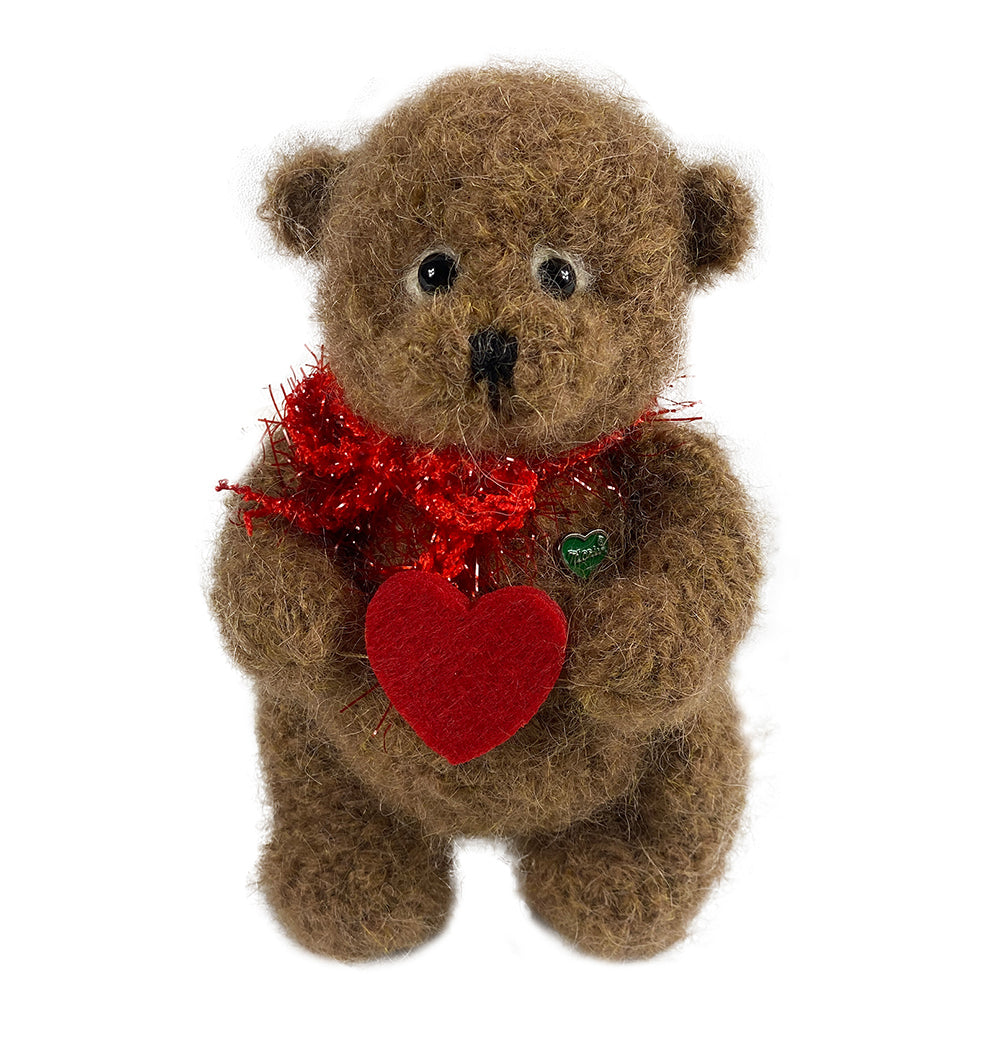 Lovely ist ein zauberhafter, handgehäkelter Teddy aus schokobrauner Baby-Alpakawolle, der mit seinem süßen Blick und seinem leicht geneigten Köpfchen sofort die Herzen erobert. Zwischen den Pfoten trägt er ein großes Filzherz – ein Zeichen seiner Liebe und Geborgenheit. Um den Hals schmückt ihn eine elegante rote Schleife, die seinen Charme perfekt abrundet. Mit einer Größe von 14 cm ist er der ideale Begleiter zum Liebhaben und Verschenken!