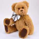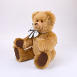 Ludwig ist ein Teddybär mit Charakter. Sein haselnussbraunes Mohairfell ist weich und dicht, genau richtig zum Anlehnen und Festhalten. In seine braunen Augen kann man direkt hineinsehen – sie wirken ruhig und freundlich, fast so, als würde er zuhören. Seine von Hand gestickte Nase passt perfekt zu seinem sanften Gesichtsausdruck.