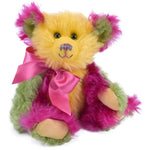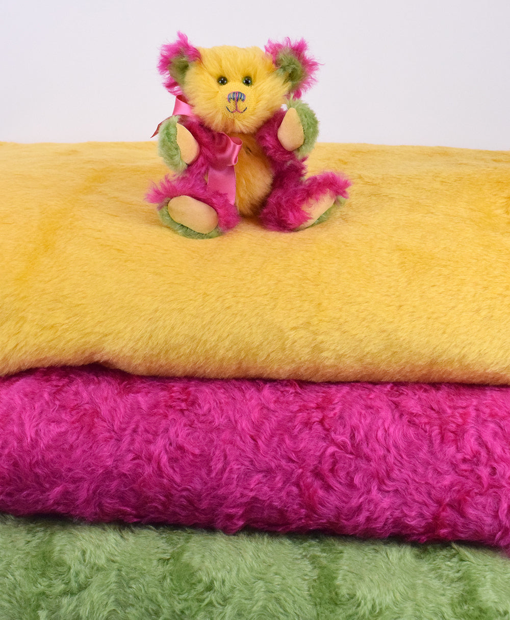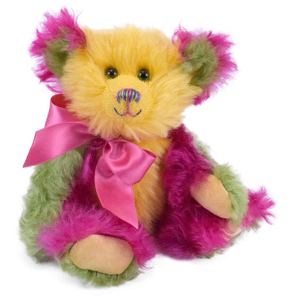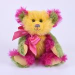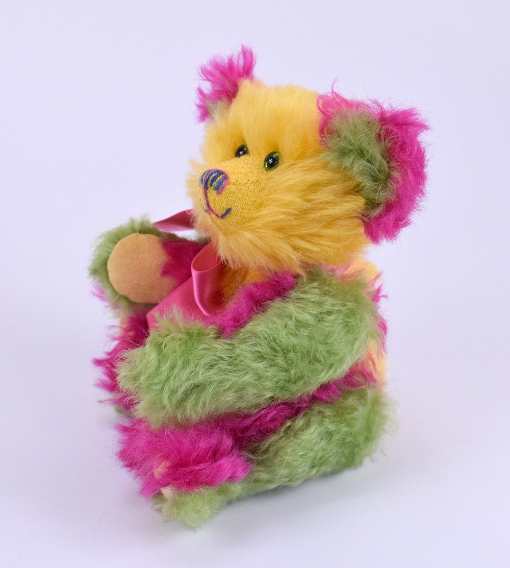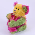 Flory ist ein wahrhaft bezaubernder Teddybär, der mit seinen strahlenden Farben sofort ins Auge fällt. Das hochwertige Mohair in leuchtendem Gelb, strahlendem Pink und sattem Grün verleiht ihm eine fröhliche und lebendige Ausstrahlung.