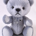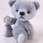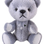 Dieser Teddybär ist so eisblau, wie der Himmel, kurz bevor Schnee fällt.