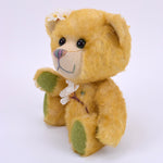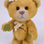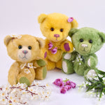 "April, April, der macht was er will!" - ausgefallen, verschmitzt und gespitzt - so sieht unser frühlingshafter Aprilbär aus. Sein Mohairfell ist blond gespitzt auf hellen, zarten Untergrund. Auch das bunt gestickte Schnäuzchen spiegelt die Vielfältigkeit des Aprils wider. Zwei große, grüne Knopfaugen passen dazu genauso wie das Mohairfell und die zarten Kirsch-Blüten an seinem Bauch und Kopf. Teddybär April lächelt verspielt, denn er freut sich aufs Quatsch machen, schöne Blumen und die warme Sonne.