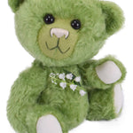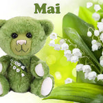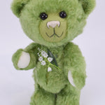 Grün - wie frisches Gras und mit Maiglöckchen auf der Brust - so sieht unser Teddybär Mai aus. Sohlen und Pfoten sowie das weiß gestickte Schnäuzchen spiegeln die Farbe der Mai-Glocken Blütenblätter wieder.Teddybär Mai lächelt selbstbewusst, denn er freut sich auf blühende Natur und schönes Wetter.