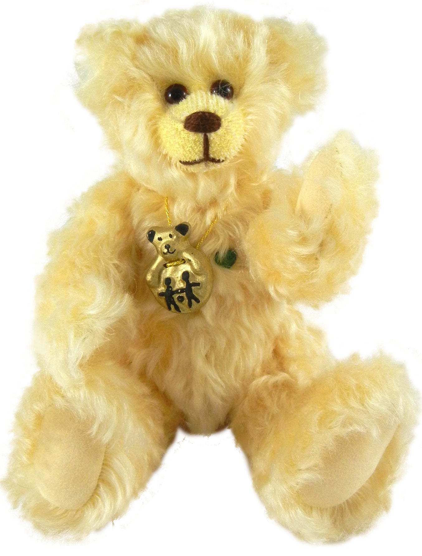 ZWILLING (21. Mai - 21. Juni) Der blonde Teddybär ist 21 cm groß und trägt einen Sternzeichenanhänger "Zwilling" aus Papiermaché.