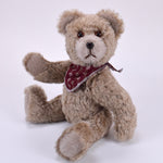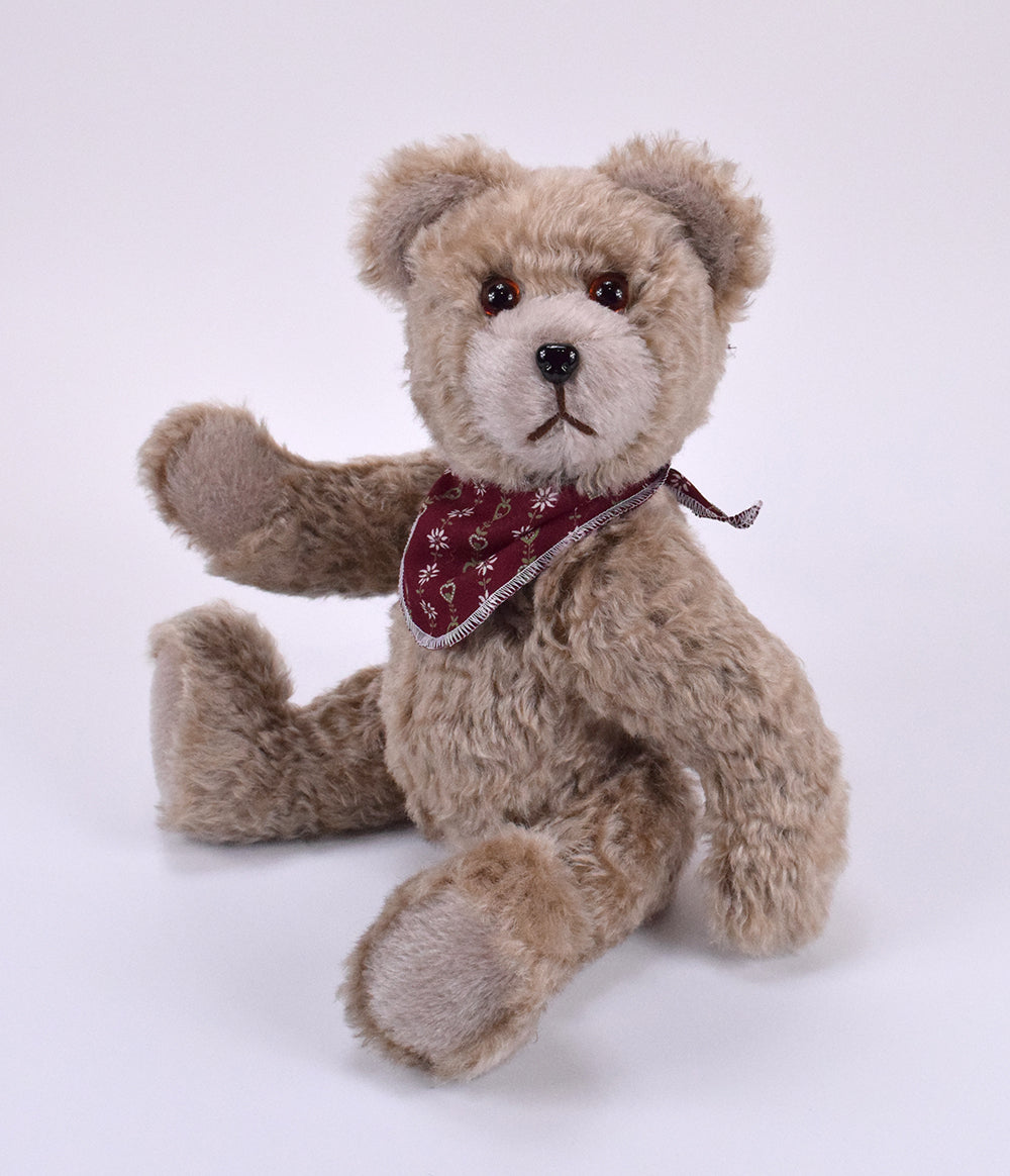 Benedikt, ein klassisch schöner Teddybär mit ruhiger Seele und einem treuen Blick, der jeden sofort berührt. Sein edles, leicht gelocktes Mohair in warmem Beigeton verleiht ihm eine zeitlose Ausstrahlung – weich, natürlich und voller Charakter.