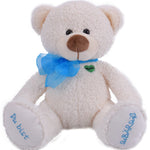 Dieser Wünscheteddy möchte genau das sagen. Mit seinem weichen, weißen Fell und seiner liebevollen Ausstrahlung erobert er jedes Herz im Sturm. Auf seinen Sohlen trägt er die fröhliche Botschaft „Du bist suBÄRsüß“ – mit dem kleinen Wortspiel, das einfach gute Laune macht. Die blaue Bestickung der Worte „Du bist“ und „suBÄRsüß“ verleiht ihm dabei seinen besonderen Charme.