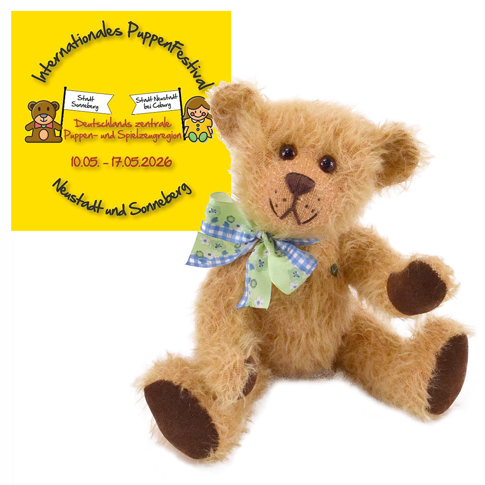 Die Festivaledition 2026 ist ein 27 cm großer Teddybär aus blondem Mohair, das ihm einen besonders lebendigen und leicht frechen Ausdruck verleiht. Sein weiches, struppiges Fell macht ihn zu einem echten Blickfang – und zu einem Bären, der sofort im Gedächtnis bleibt.