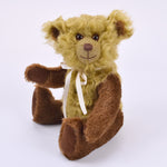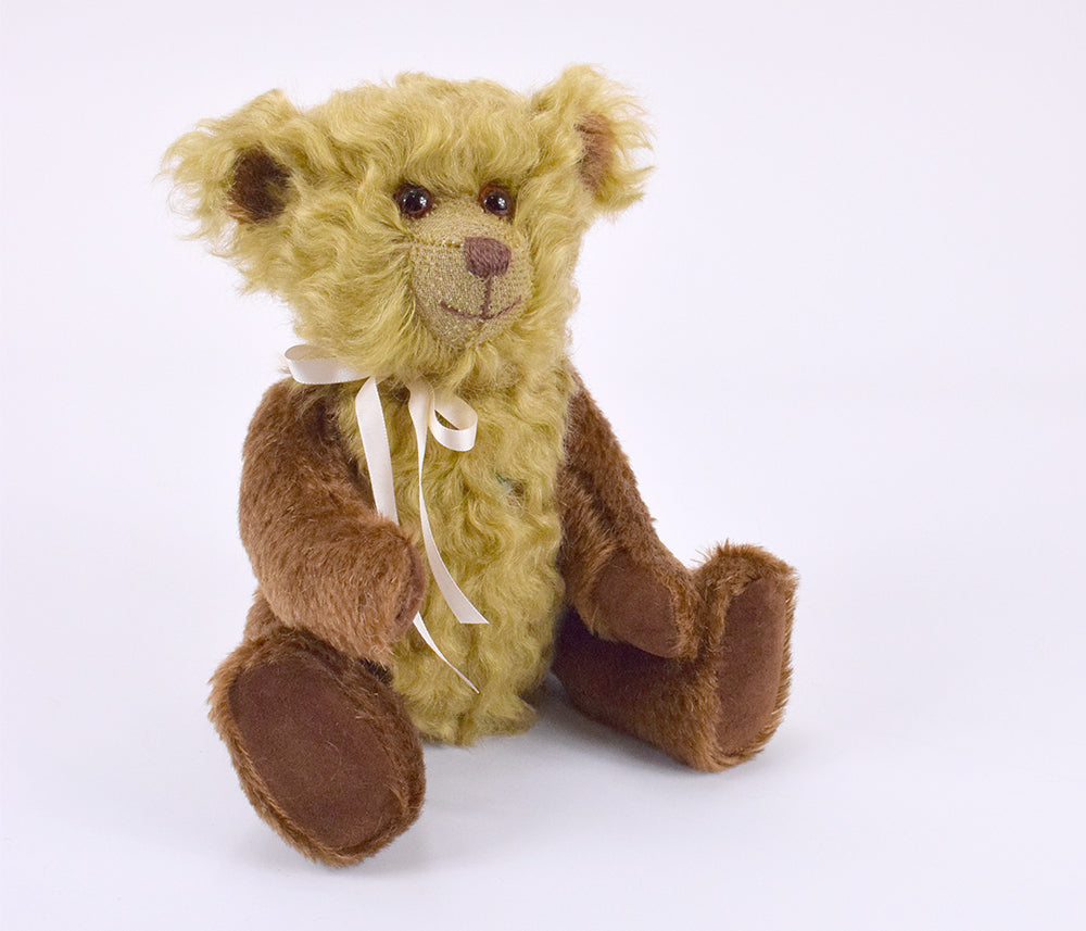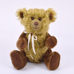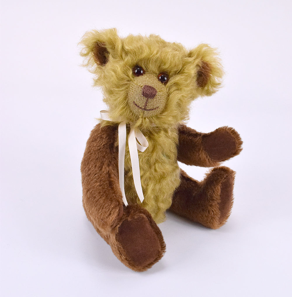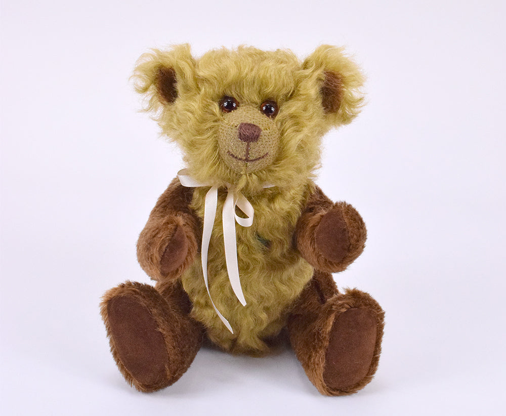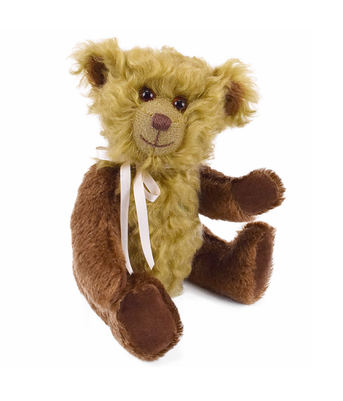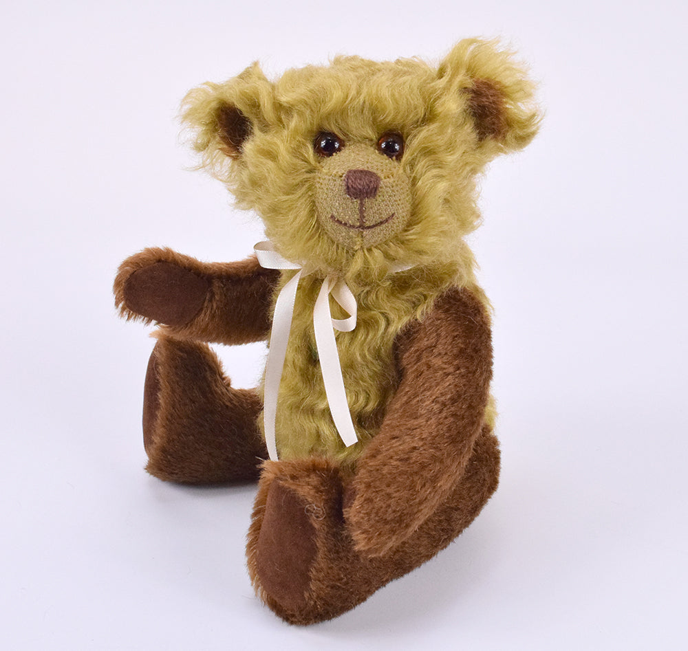 Ein Bär wie ein Dessert: Teddybär Pistazien-Schokolädchen vereint zwei köstliche Farben – zartes Pistaziengrün und tiefes Schokobraun – zu einer unwiderstehlichen Kombination. Gefertigt aus feinem Mohair und mit einer Größe von 22 cm ist er ein handlicher Schatz für alle, die das Besondere lieben.