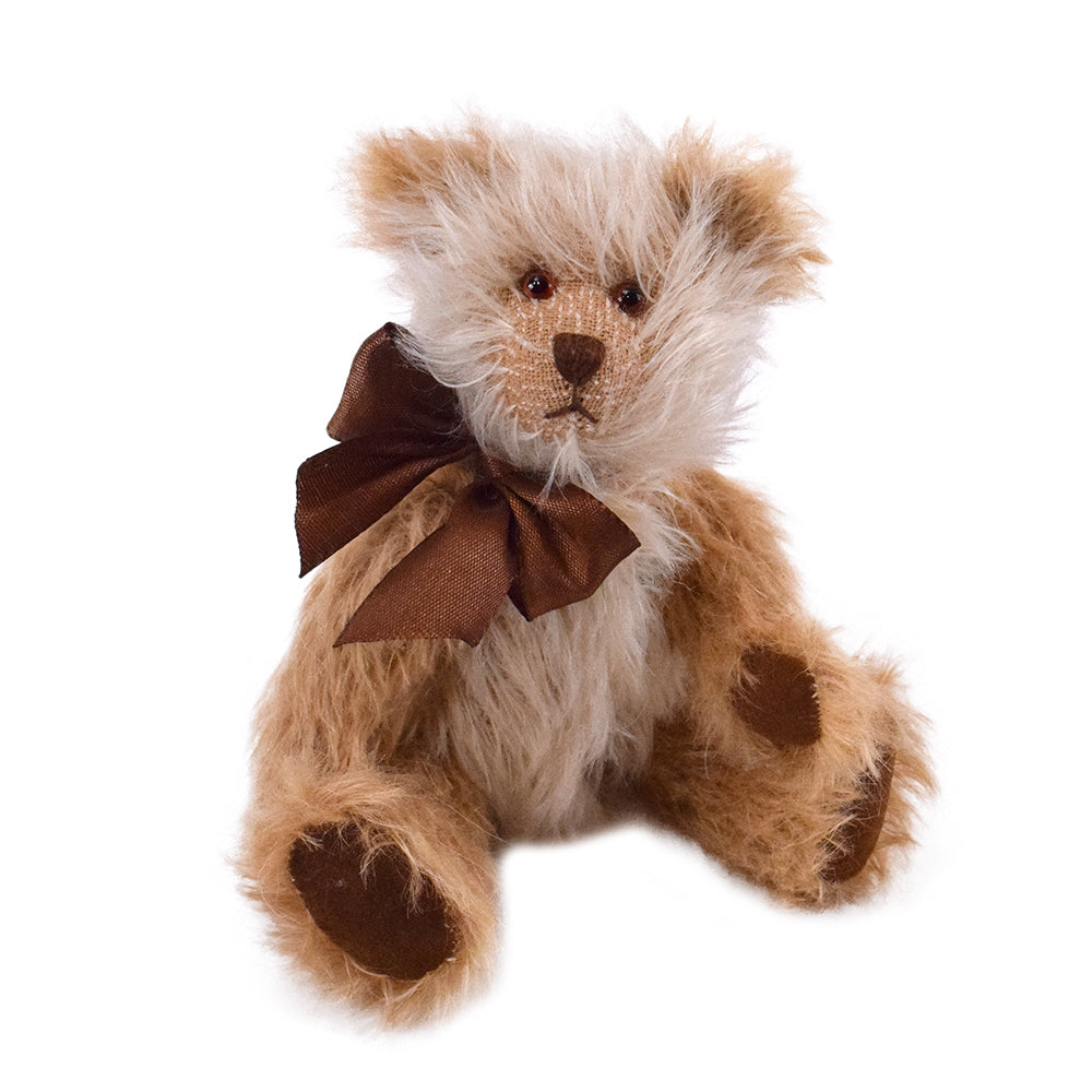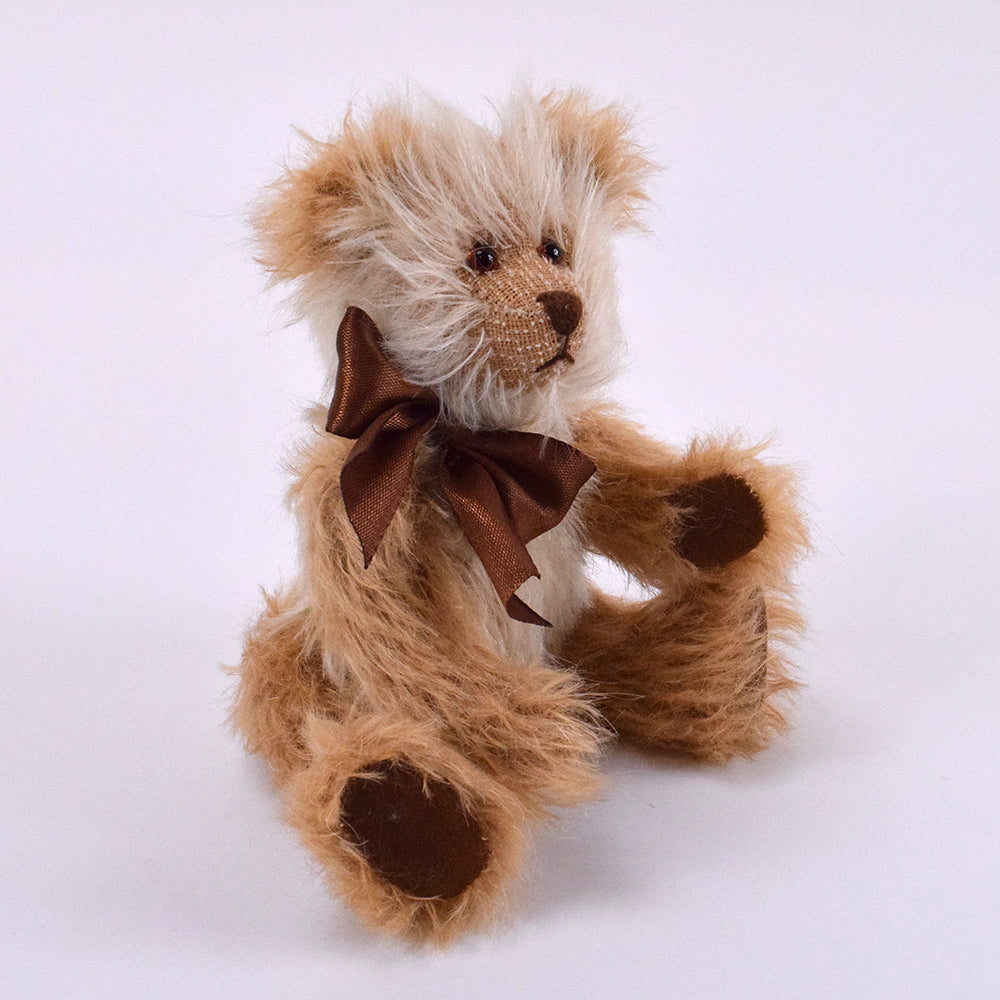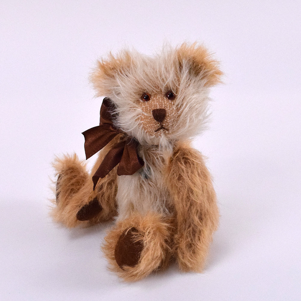 Sein honigbraunes Mohair strahlt Wärme und Natürlichkeit aus. Rücken und Bauch sind in einem sanften Beige gehalten, was ihm eine besonders harmonische und freundliche Ausstrahlung verleiht. Das leicht zottelige Mohair gibt ihm dabei eine pfiffige, lebendige Note – nicht geschniegelt, sondern charmant natürlich.