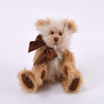 Die Pfoten aus braunem Waschleder setzen einen hochwertigen, handwerklichen Akzent und passen perfekt zu seinem warmen Farbspiel. Eine braune Schleife rundet sein Erscheinungsbild klassisch und stilvoll ab.
