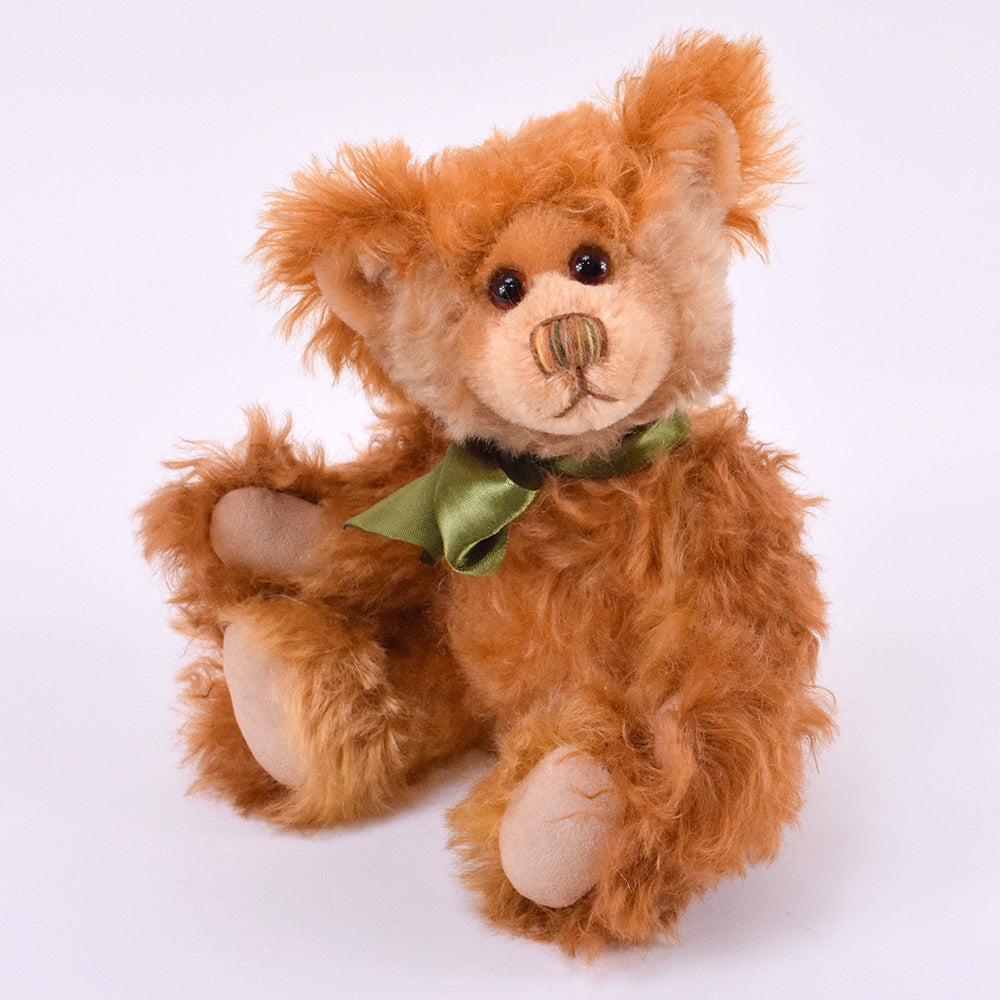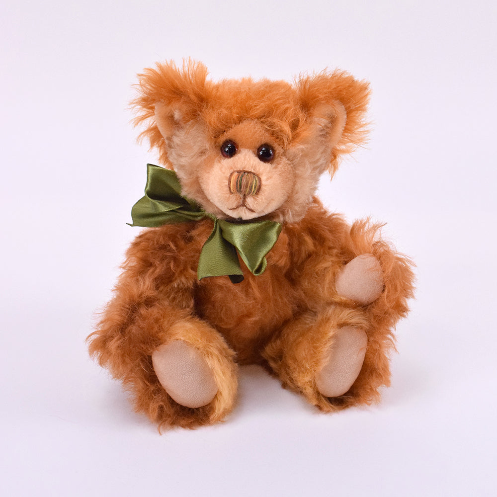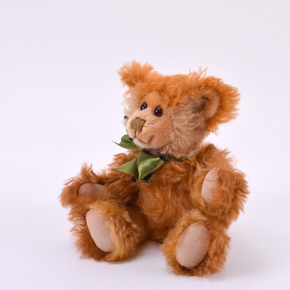 Bennett ist 25 cm liebevolle Handarbeit aus hochwertigem Mohair. Sein warmes, rostbraunes Fell wirkt lebendig und weich zugleich – fast wie von der Abendsonne geküsst.