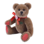 Um den Hals trägt es eine rote Schleife, geschmückt mit einem kleinen Herzknopf, der seine Botschaft sofort klar macht: Dieses Bärchen kommt von Herzen. Sein freundlicher Blick und die liebevollen Details machen es zu einem wunderbaren kleinen Begleiter für besondere Momente.